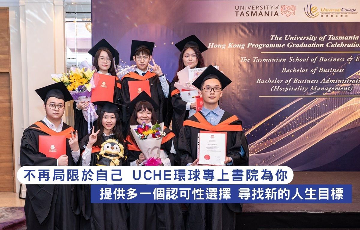 有見及此,UCHE環球專上書院挑選出澳洲其中極具認受性的學校,包括:澳洲塔斯馬尼亞大學及澳洲墨爾本理工學院。這些學校於本港、澳洲乃至世界都具有極高的課程認受性。而且更重要的是該學校與UCHE環球專上書院教育理念相近,希望脱離固有的填鴨式教育,課程配以大量活動教學,真正做到以人為本,為學生提供最合適的課程教育,寓學習於娛樂。
