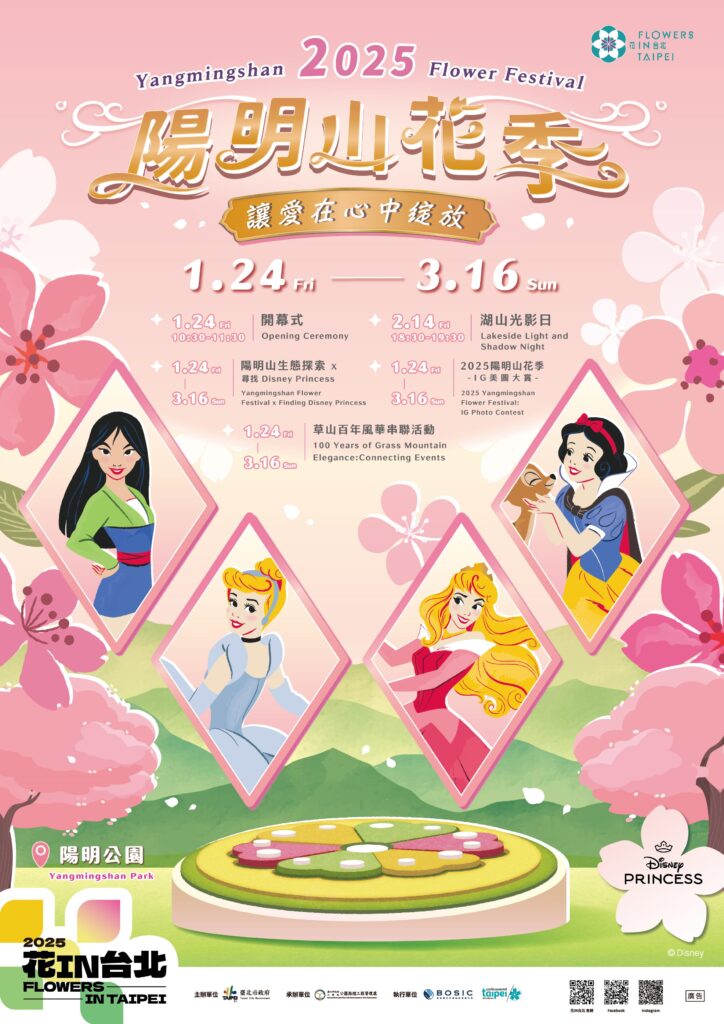【記者 薛郁雯/台北報導】2025陽明山花季於今日(1月24日)在陽明山花鐘廣場隆重揭幕,活動將持續至3月16日。今年花季以「讓愛在心中綻放」為主題,特別與迪士尼公主聯名合作,推出白雪公主、灰姑娘、美女與野獸以及迪士尼城堡四大主題裝置藝術,結合陽明山迷人的櫻花美景,為民眾打造一場如童話般的夢幻賞花體驗。