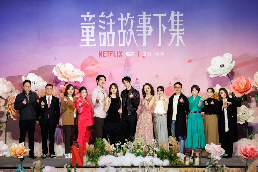 圖說:Netflix《童話故事下集》監製 孫嘉騏、Tizzy Bac 前源、Tizzy Bac 惠婷 、謝依霖、傅孟柏、柯佳嬿、劉以豪、柯淑勤、姚愛寗、編導 李念修、製作人 黃薇夏(左起)。(圖/Netflix提供)
