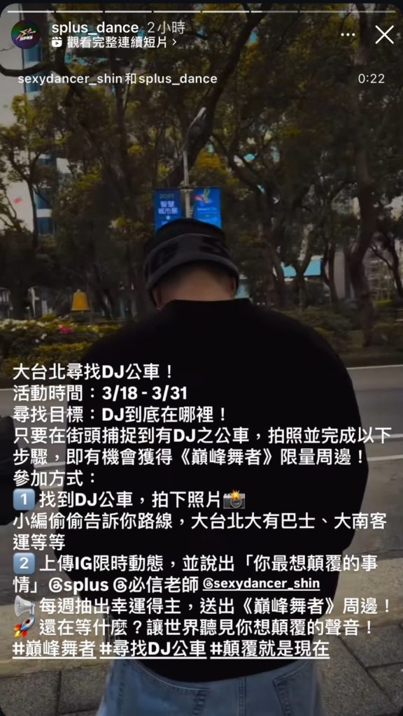 另外,《S+PLUS巔峰舞者》還在官方限時動態PO出「大台北尋找DJ公車!」,即日起至3/31為止: