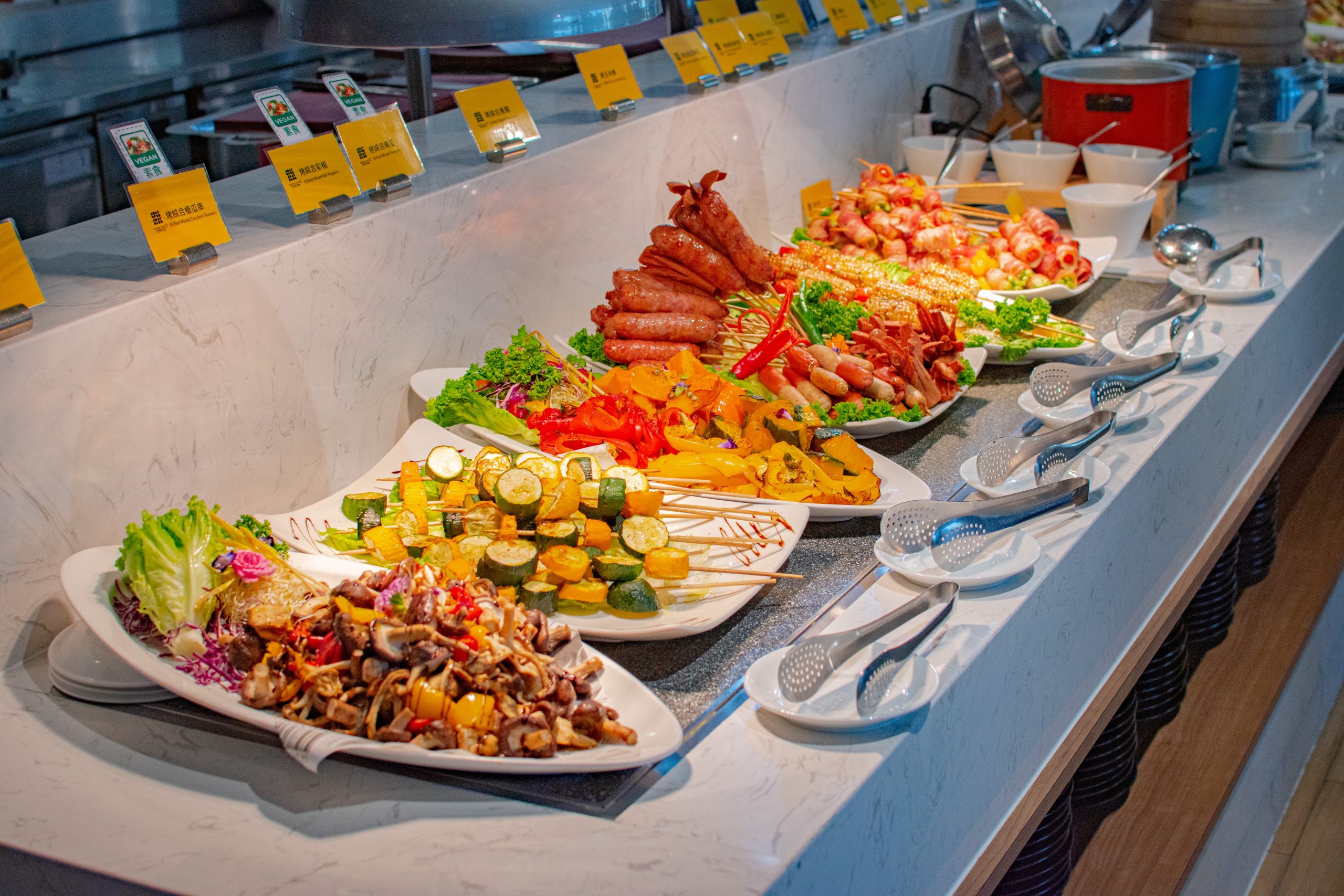 河畔餐廳位於酒店一樓,大片落地窗外盡收綠意與淡水河畔悠閒景致。主廚團隊於現場備下熱氣騰騰的燒烤料理,肉汁在鐵網上滋滋作響,搭配各式應景美饌,讓舌尖與鼻尖都沉醉其中。無論是炭烤牛排、醬汁雞翅,或鮮甜海鮮,皆如同煙火般層層綻放,讓團圓聚餐不只是溫飽,更是一場味覺與氛圍的盛宴。