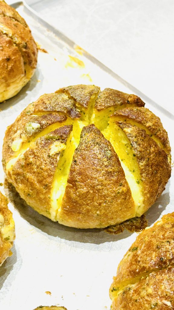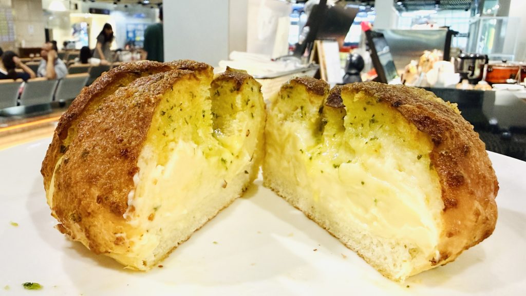 現場有「非搭機」的民眾,而是專程來機場購買八蒜包的顧客表示,他們的八蒜包外酥內軟,表層充滿著濃郁的蒜香,中間夾有香濃的乳酪,非常的有層次感,每週都會專程來機場購買,做為早餐或下午茶的點心享用。