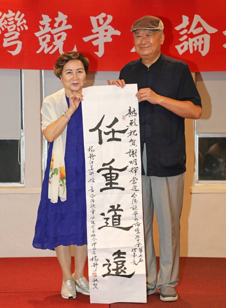 在致詞環節中,創會會長林建甫教授與創會秘書長彭錦鵬教授首先向全體會員致謝,並肯定學會在過去十八年的卓越貢獻。第六屆理事長紀俊臣教授亦表達了對新團隊的信心與祝福。新任理事長謝明輝先生隨後發表了就職感言,他強調,本學會將延續理性、專業的研究精神,致力於「謀共識、找出路」,並將其獨有的「詩詞中的中華文化」與「國家競爭力論述」結合,使學會成為一個兼具學術深度與人文廣度的跨界平台。