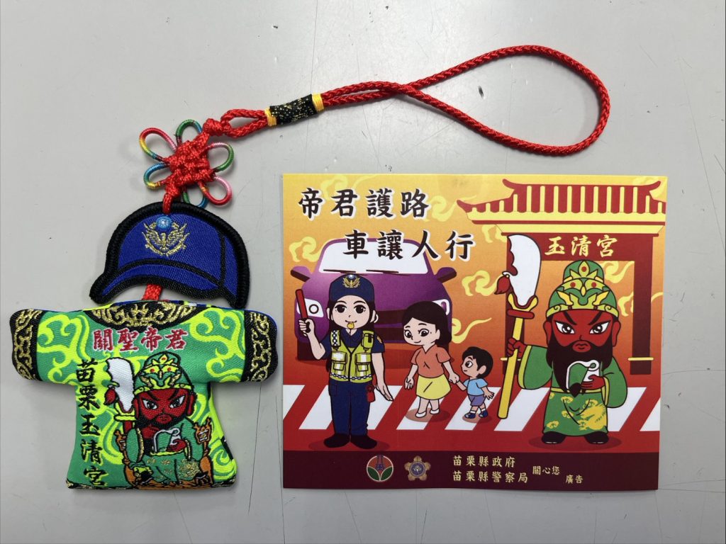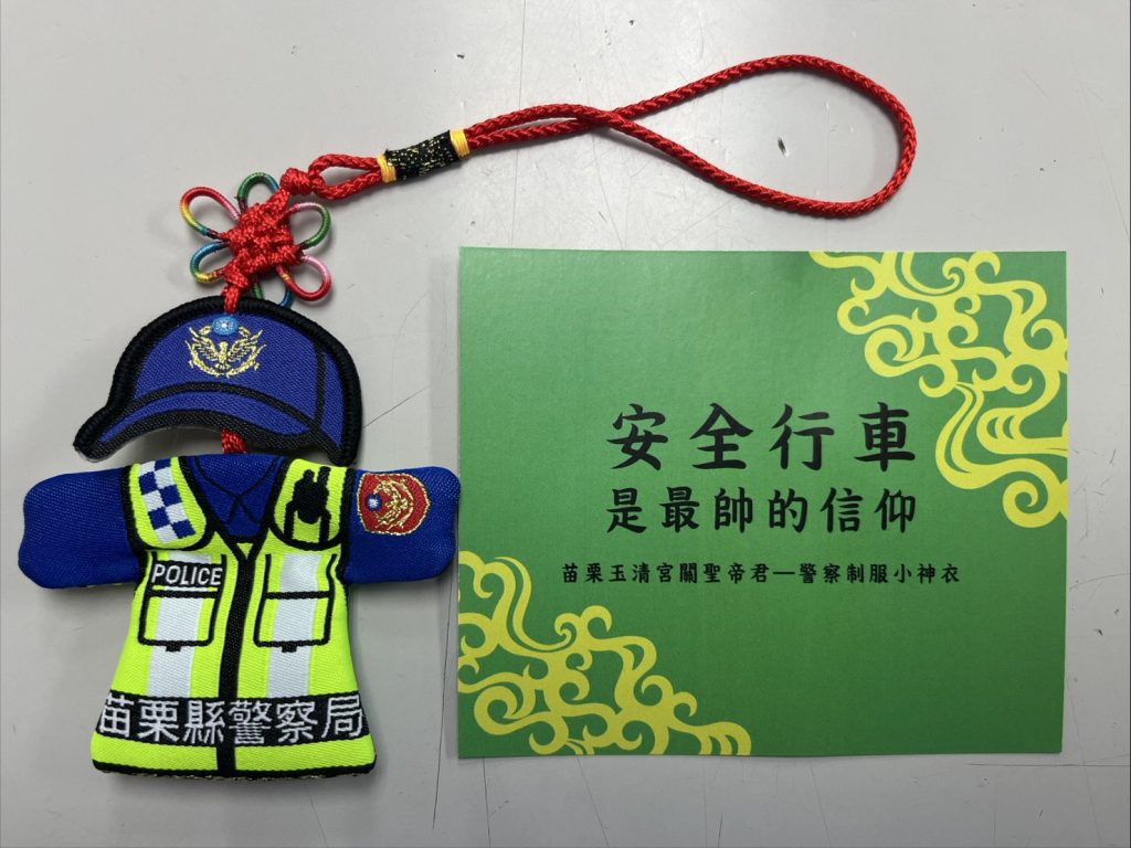 信仰加持、警民共護,平安出行再升級!苗栗縣警察局與苗栗市玉清宮首度聯名推出「關聖帝君警察制服小神衣」,將地方信仰文化與交通安全教育創意結合,傳遞「安全行車,是最帥的信仰」理念,期盼藉由神明護佑與警方守護的雙重力量,喚起全民對交通安全的重視。