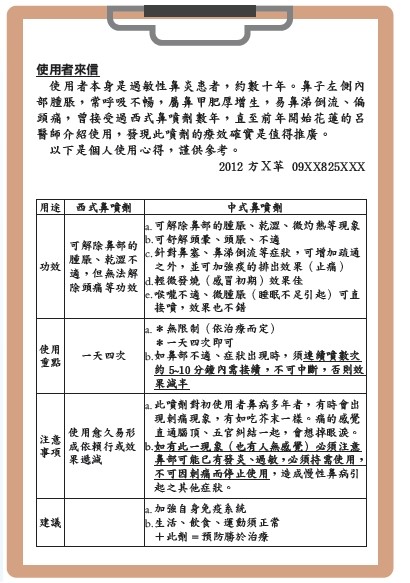 臨床試驗結果顯示,該中藥鼻噴劑在用藥後30分鐘內可明顯減輕鼻塞、流鼻水、打噴嚏的症狀,大部分患者的鼻敏感問題得到顯著改善。可貴的是,由於其完全採用純天然中藥成分,避免了西藥鼻噴劑可能帶來的依賴性和難以避免的副作用,可作為類固醇、抗組織胺等西藥抗藥性病人的替代性藥品。