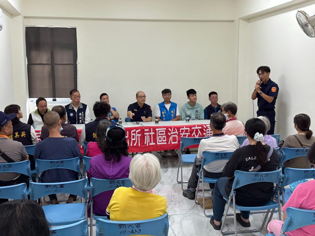 【報新聞 記者林致遠 台東報導】臺東縣警察局臺東分局今(23)日上午在臺東市朝天宮舉辦「社區治安會議」,縣議員張國洲、周達三、縣議員黃治維秘書李宣毅、縣議員陳志峰助理蔡瑋倫、臺東市民代表陳俊宏、王泰捷、中心里里長鍾皇亭、民生里里長鍾美英、仁和里里長李坤智及70餘位鄉親蒞臨參與;副分局長林進生率各組、隊主管到場實施「識詐、交通安全及婦幼安全」宣導,社區民眾出席踴躍,一同來關心、了解轄區治安及交通狀況並提供建言。