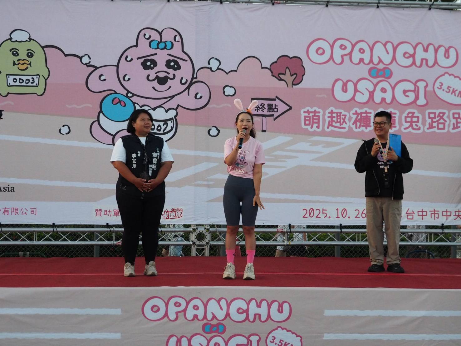 萌趣褲褲兔路跑:台中市政府運動局專門委員黃欣樺、立法委員廖偉翔服務處代表、全統運動用品總經理余俊芳。