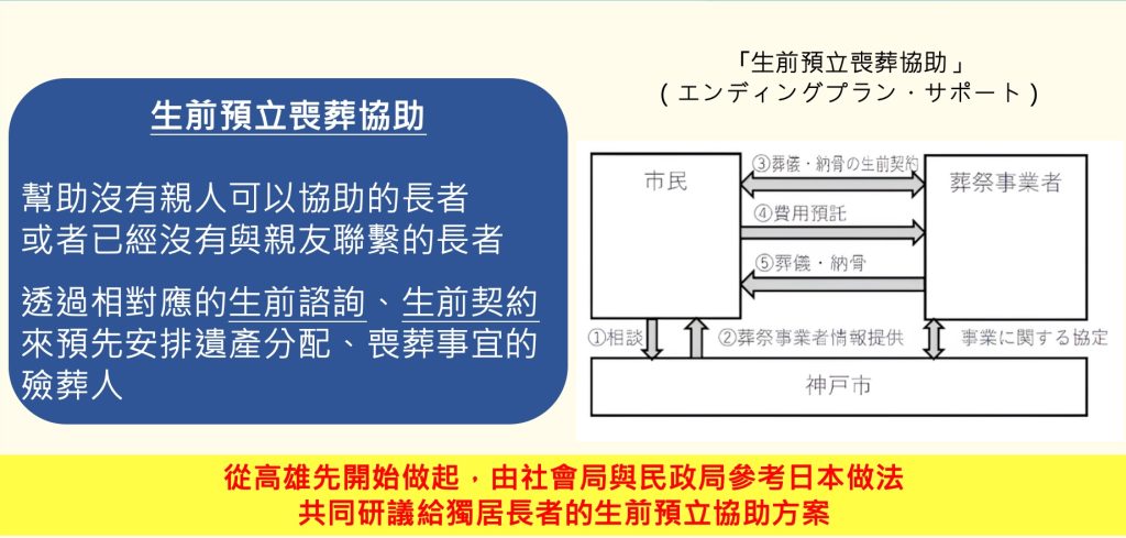 從高雄先開始做起由社會局與民政局參考日本做法共同研議給獨居長者的生前預立協助方案