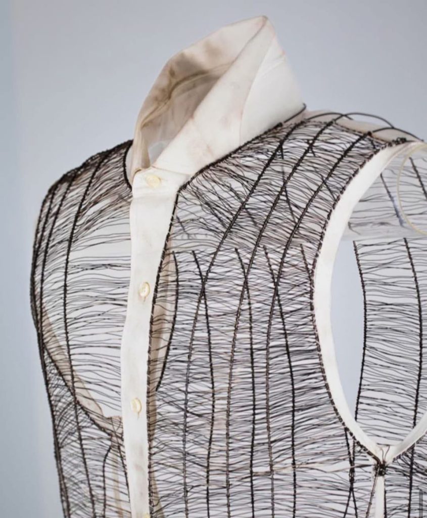 Winnie 將象徵性的「制服」拆解到只剩輪廓、縫線與骨架。