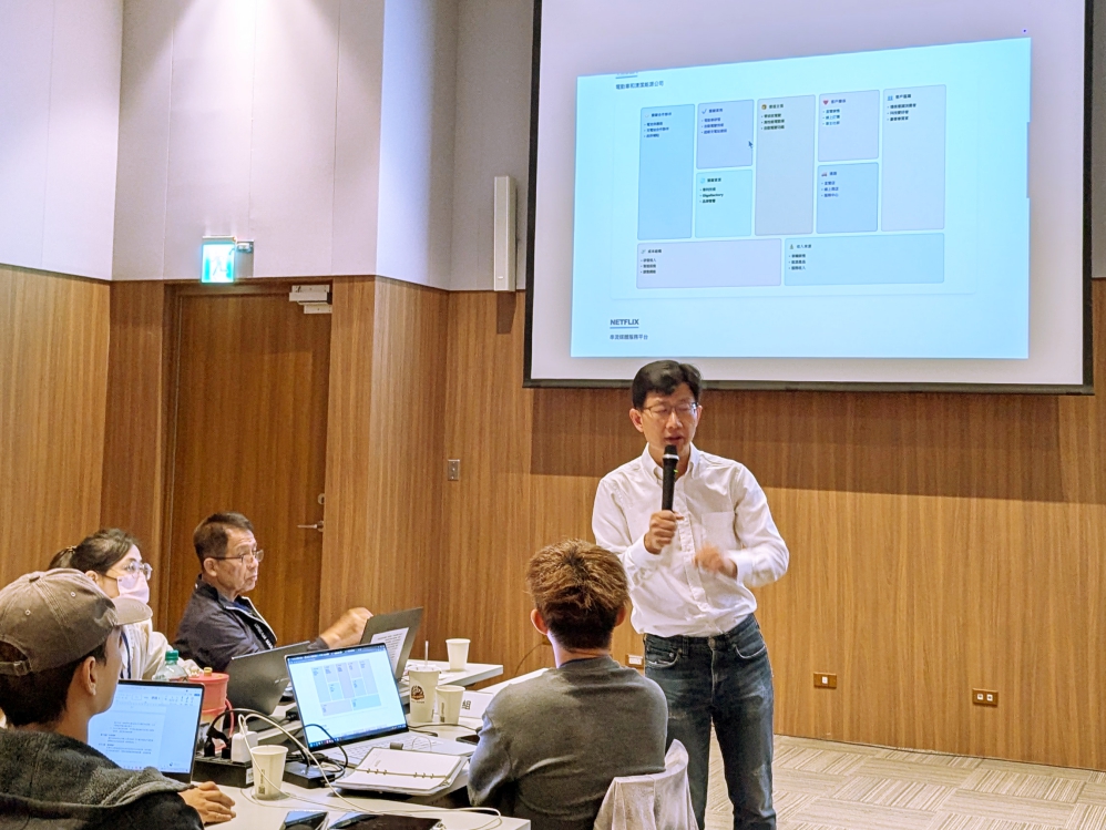 在營運輔導工作坊上午 的「商業模式九宮格(Business Model Canvas)」課程中,學員透過 BM Canvas AI工具 練習如何運用AI生成市場策略、辨識價值鏈環節;下午進入「AI應用思維與Vibe Coding實作」,體驗AI如何協助自動生成程式腳本與應用。
