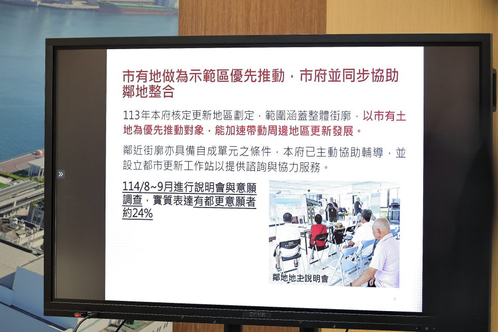 謝處長指出,相關法令依據及行政程序均依《都市更新條例》辦理,其中第三章「政府主導都市更新」與第五章「權利變換」皆訂有明確規範,法令面與程序面一切依法有據。至於容積率皆依現行法令辦理,基準容積率為560%,並得依《都市更新條例》申請容積獎勵最高50%,上限為840%。本案並未經都市計畫變更,也未提高容積率,與社會關注的京華城案性質完全不同;市府自112年起即多次對外說明本案內容,113年完成先期規劃,114年陸續辦理公開閱覽、招商說明會、地區說明會及評選委員會審查等程序,並經市議會兩次專案小組報告及三次廉政平臺聯繫會議審視,一切程序均公開透明。