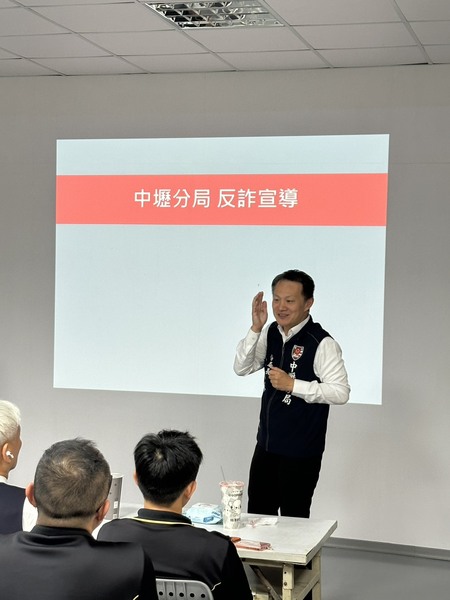中壢警分局與55688台灣大車隊桃園分公司進行反詐簡報宣導,與該公司資深經理陳聖偉攜手合作,共同提升司機反防詐意識,齊力築起防詐安全網。