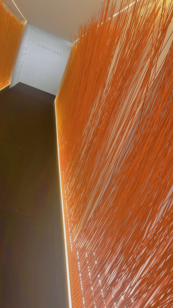 CINDY CHAO 以「遇見光」為核心經驗。珠寶展場以台灣藝術家游文富成百上千條垂落的白色纖維,像光的絲線、時間的羽化,使觀者以另一種觀看方式的重置,走入高訂珠寶另種意涵⋯⋯