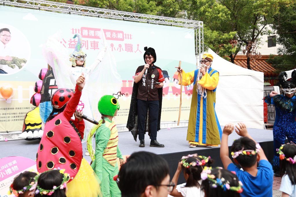 由高雄市議員林智鴻與高雄市社會福利慈善總會共同主辦的「善循環・愛永續」【公益列車×小小職人】活動,今(8)日於鳳山五甲龍成宮熱鬧登場。活動結合公益、教育與親子體驗,匯集社會愛心物資捐贈關懷弱勢,也讓小朋友化身「小小職人」,從遊戲中體驗各行各業的專業與使命。