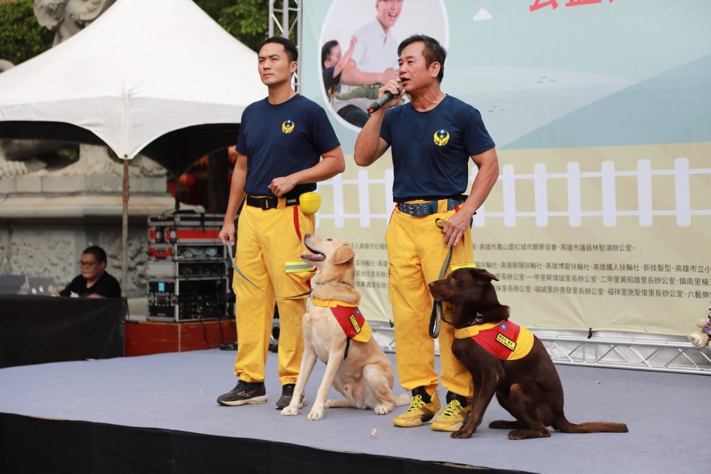 支援花蓮馬太鞍溪堰塞湖救災勤務的高雄市消防局特搜大隊搜救犬隊「藍波」與「萬斯」也來到現場,萌度與英勇兼具,成為全場焦點。林智鴻表示,活動規劃「小小波麗士」、「小小消防員」及「搜救犬勤務認識」等體驗項目,讓孩子近距離了解警消的日常與救災精神。活動同時設置竹林英雄、鳳儀小學堂、恐龍運動場、創意胸章與手擲機DIY等闖關區,寓教於樂、趣味十足。