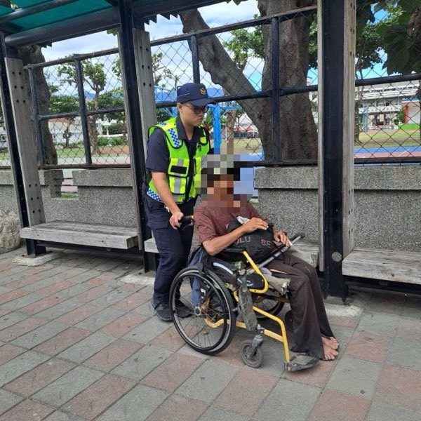 臺東分局馬蘭派出所警員楊明賢、賴佳暉日前上午10時執行勤區查察勤務時,發現更生路474巷內有一名行動不便男子,因輪椅卡在路邊無法前進,獨自受困在路旁。員警見狀立即停下巡邏車,一人協助在後方疏導交通確保安全,另一人上前推動輪椅並將男子推到安全地方,協助男子順利脫困。