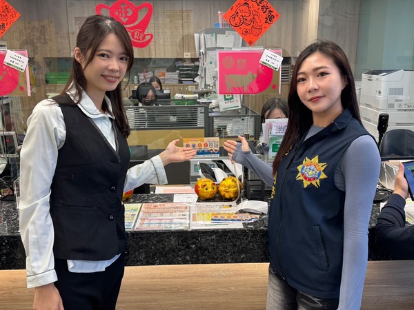 結合桃園府前郵局經理張雅婷 一同宣導普發現金「防詐四不」原則,提醒民眾務必提高警覺,慎防詐騙。
