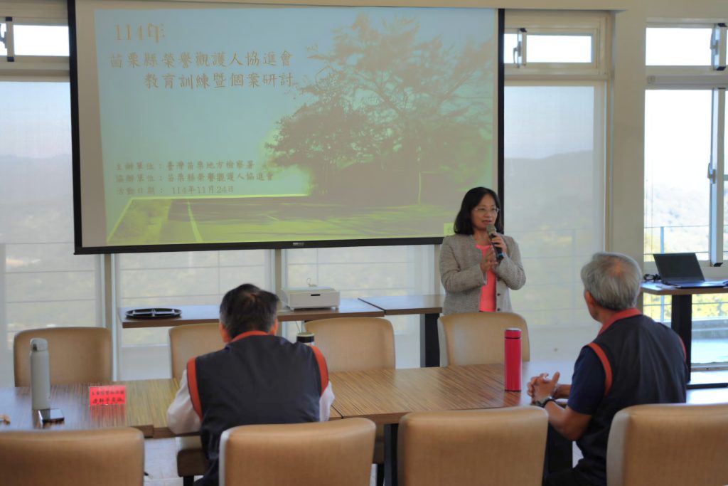 為精進榮譽觀護人之專業知能,提升保護管束工作的輔導品質與實務協作,苗栗地方檢察署今(24)日上午於卓蘭自然風情餐廳會議室舉辦「114年度榮譽觀護人成長教育訓練暨個案研討」。本次課程邀請本署資深榮譽觀護人葉錦煌、吳長祿老師,以及本署觀護心理師擔任講師,以實際案例為根基進行經驗交流,協助榮譽觀護人提升風險辨識、溝通技巧與實務處遇能力。