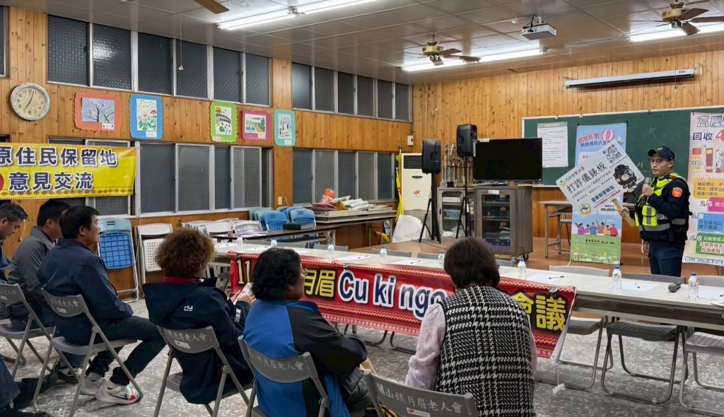 本次活動特別結合部落會議進行宣講,除了讓員警的重要宣導資訊能即時傳達給族人,也讓部落聲音更有力量,透過集體討論與共識形成,使族人在法律架構下獲得充分保障,守護部落的傳統領域、文化價值與土地權益。部落會議不僅是族人共同決定重大事項的平台,也能有效避免意見被忽略,展現部落自主與團結的力量。宣講現場,員警針對近期最受關注的「普發一萬元現金」相關詐騙手法,進行ATM防詐騙重點提醒,提醒族人切勿點擊不明簡訊連結、不依照陌生指示操作ATM轉帳,更不要提供金融卡、驗證碼及個人資料,牢記防詐三步驟:「一聽、二掛、三查證」,隨時撥打165反詐騙專線或110求證,避免辛苦累積的積蓄遭詐騙集團騙走。在交通安全方面,員警同步宣導最新「無照駕駛提高罰則」規定,提醒年輕族人勿因一時方便而無照上路,不僅違規受罰,更可能造成無法彌補的傷害;同時也呼籲用路人務必遵守「車輛慢看停、行人安全行」原則,夜間外出應配戴反光配件,提高能見度,降低事故風險。宣講過程中,員警透過實際案例分享,讓族人更能感同身受,提升自我保護意識。此外,也特別加強婦幼安全宣講,提醒家長留意孩童行蹤,避免夜間單獨外出,女性族人若遇可疑人士尾隨,應立即前往人多明亮處並撥打110求助。
