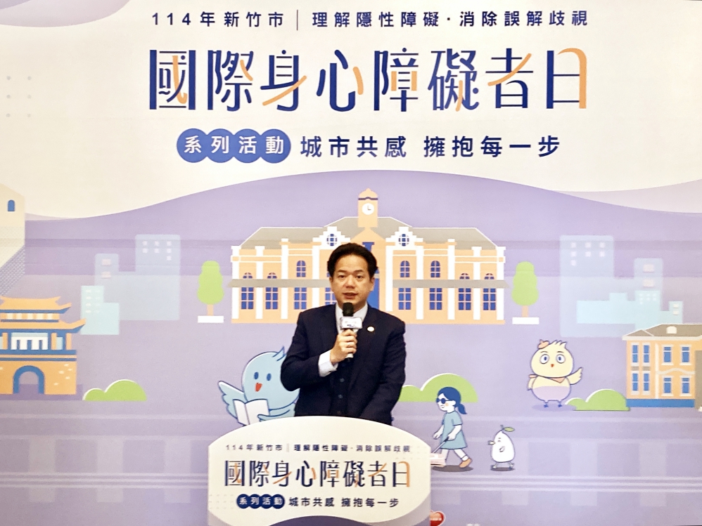 新竹市114年國際身心障礙者日系列活動,今(11/28)日在竹市府大廳舉辦系列活動開跑記者會,代理市長邱臣遠出席表示,今(2025)年以「城市共感.擁抱每一步」為主題,推出多項平權倡議與共融體驗活動,同時透過「我的出走日記」支持性論壇,帶領障礙者規劃新竹城市小旅行,並於記者會首播紀錄短片、發表4大主題易讀文件、辦理「城市共感.有你同行」身心障礙服務跨專業績優人員表揚大會,12月1日至12月7日於將軍村辦理「城市共感.藝起靠近」身心障礙者服務成果展及共融手作體驗活動,展現竹市府推動身障平權與友善政策的成果。
