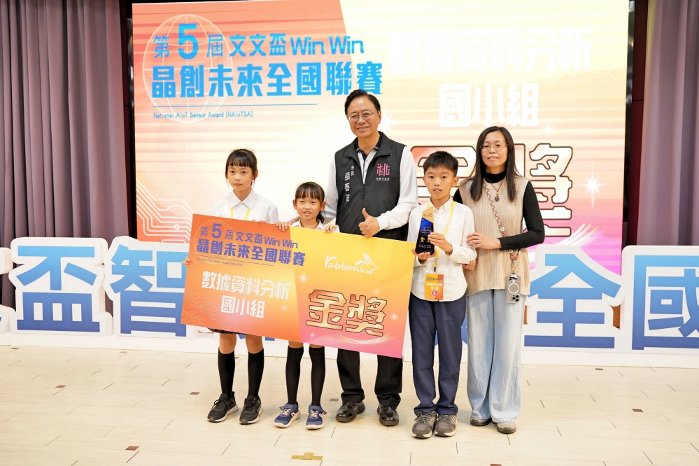 以及數據資料組-高中組,由六家高中國中部【數據帶你玩轉SEL】獲銀獎、博愛國中【年長者跌倒風險分析與預警】獲銅獎。數據資料分析-國小組,新竹縣六家國小【 AI有慧眼回收好便利】獲金獎。