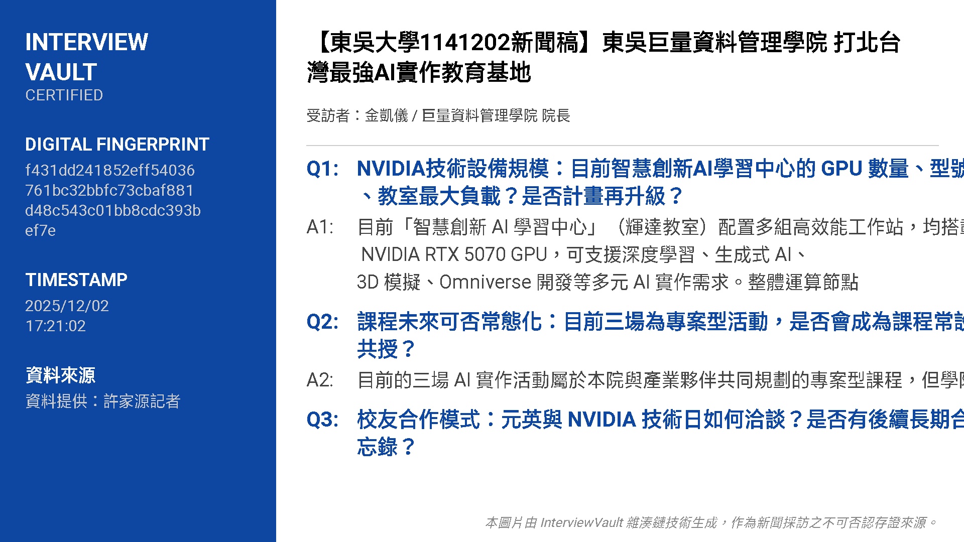 新聞來源:東吳大學(採訪紀錄如下)