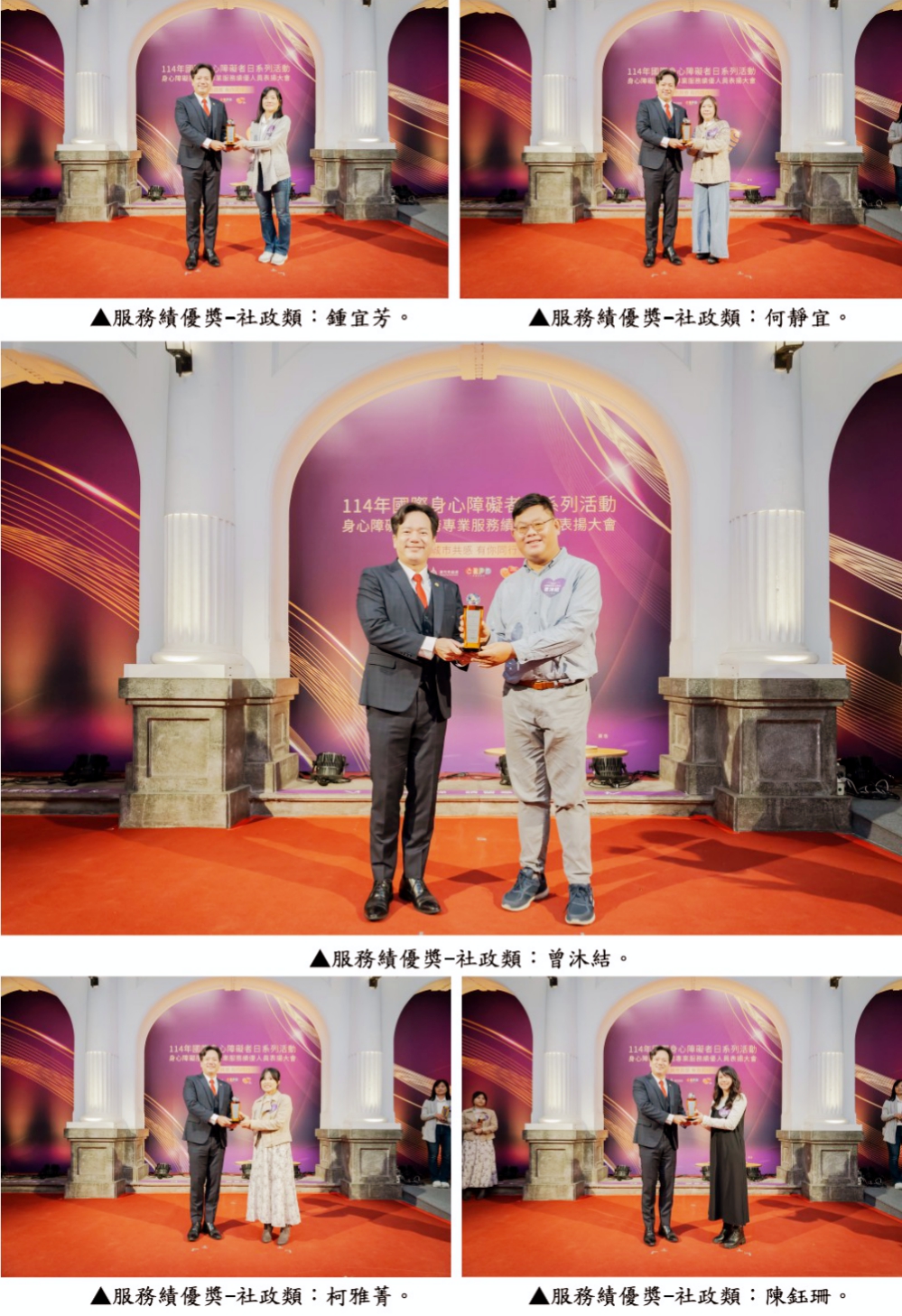 邱代理市長表示,身心障礙者福利的推動與落實,必須仰賴政府、民間團體、機構,以及第一線服務人員的跨單位合作。今年特別邀請竹市府各局處、各級學校、身心障礙團體、機構及基金會等單位,共同推薦優秀服務人員,最終選拔出 15 名在身心障礙服務領域具有卓越貢獻的專業夥伴。這些社工、專業人員與各領域工作者,是提升身心障礙朋友生活品質的重要力量。透過這次表揚,希望讓社會大眾更了解身心障礙服務的跨界協力模式,也向所有投入服務的夥伴致上誠摯謝意,感謝他們長期以來的努力與付出。