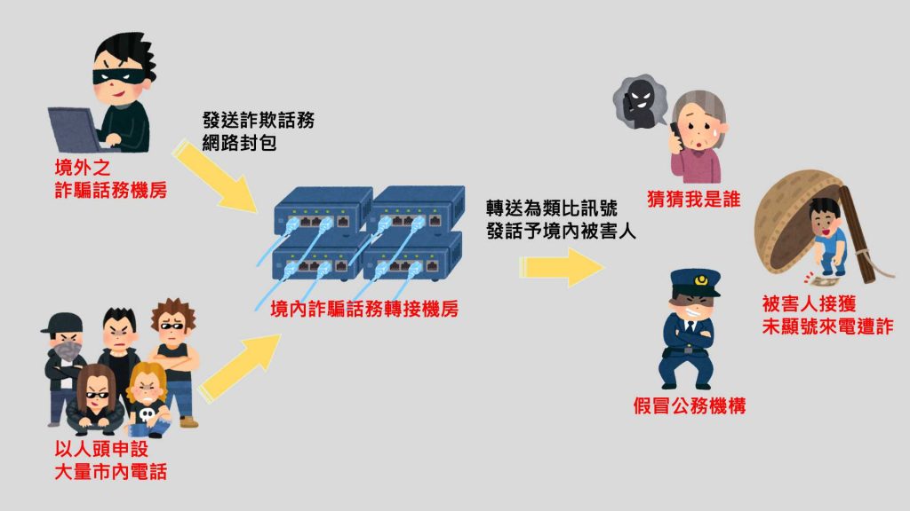 臺灣高雄地方檢察署(以下稱高雄地檢署)指揮刑事警察局南部詐欺偵查中心及高雄市政府警察局刑事警察大隊等單位成立專案小組共同偵辦詐欺集團案件,日前在高雄、臺南及桃園等地區查獲辛嫌等人共組電信詐騙話務機房,歷經多時跟監蒐證後發動搜索及先後拘捕犯嫌辛某等11人到案,查扣IPPBX話務轉接設備83台等話務機房轉接設備。該詐欺集團利用假檢警及猜猜我是誰等手法之詐欺來電向我國民眾施詐。本案經持續溯源追查,查獲指揮辛嫌之上游成員陳嫌,渠遭詐團吸收後,於我國境內接收涉案詐欺話務轉接設備並且負責架設維運,亦處理電信帳務金流。全案警詢後依涉嫌違反刑法詐欺罪移送臺灣高雄地方檢察署偵辦。