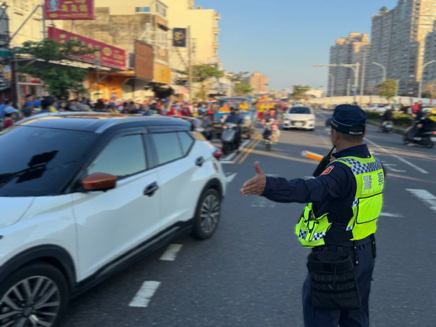 透過基本的英日文夾雜溝通,得知她希望前往郵局但不熟悉公車路線後,警員立即分工協助查詢班次資訊,詳細指引搭乘地點與方向,幫助她順利搭乘上公車,前往目的地。這份細心的協助不僅讓日本遊客在臺南的行程中增添了難忘的體驗,日後她亦透過感謝信表示:「能看到祭典真是太幸運了,員警的指路協助真的幫了大忙!」