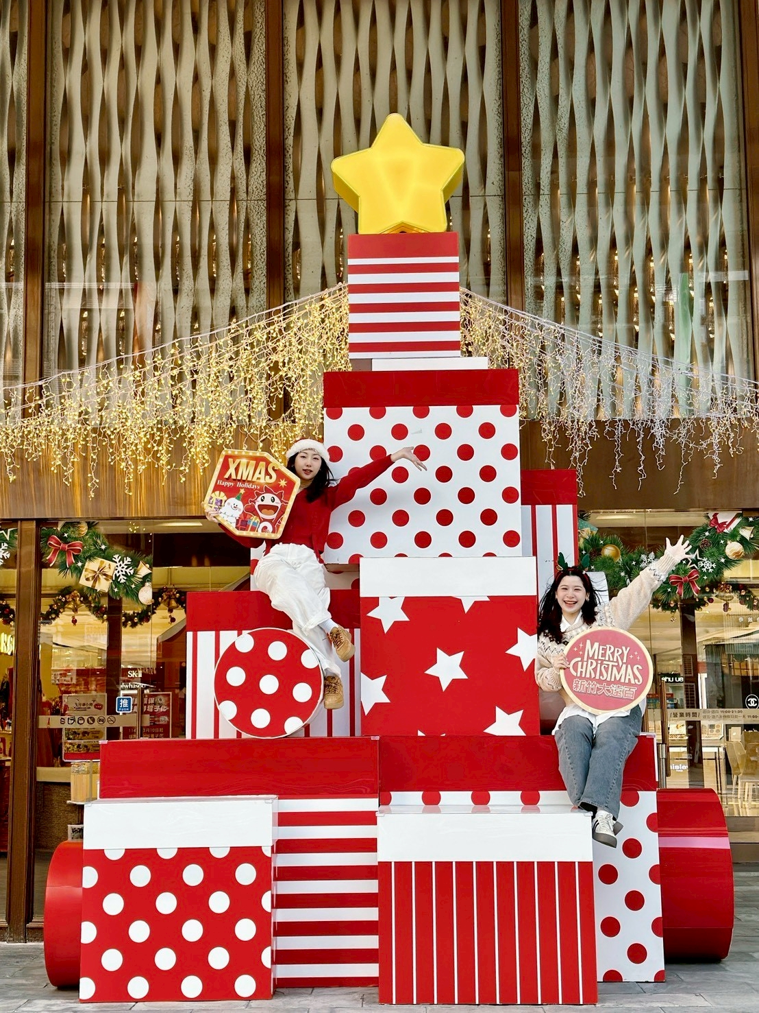 新竹大遠百今年打造最亮眼的聖誕裝置,特安排於1樓廣場正式推出「巨型聖誕禮物盒」打卡點。以溫暖燈光與節慶主題色呈現節日氛圍,成為民眾拍照留念的新焦點。巨型禮物盒以聖誕贈禮為概念,象徵將一整年的心意與祝福送給來訪的每一位顧客,活動期間開放自由參觀與拍照,歡迎民眾前來體驗,為今年的聖誕節留下難忘的亮點。