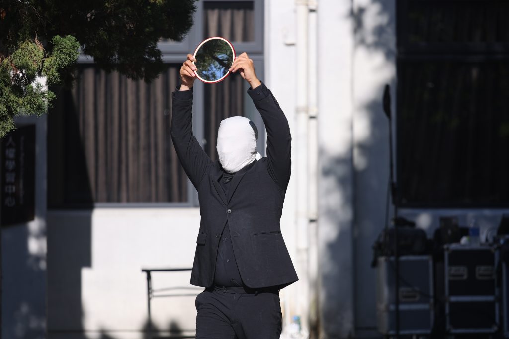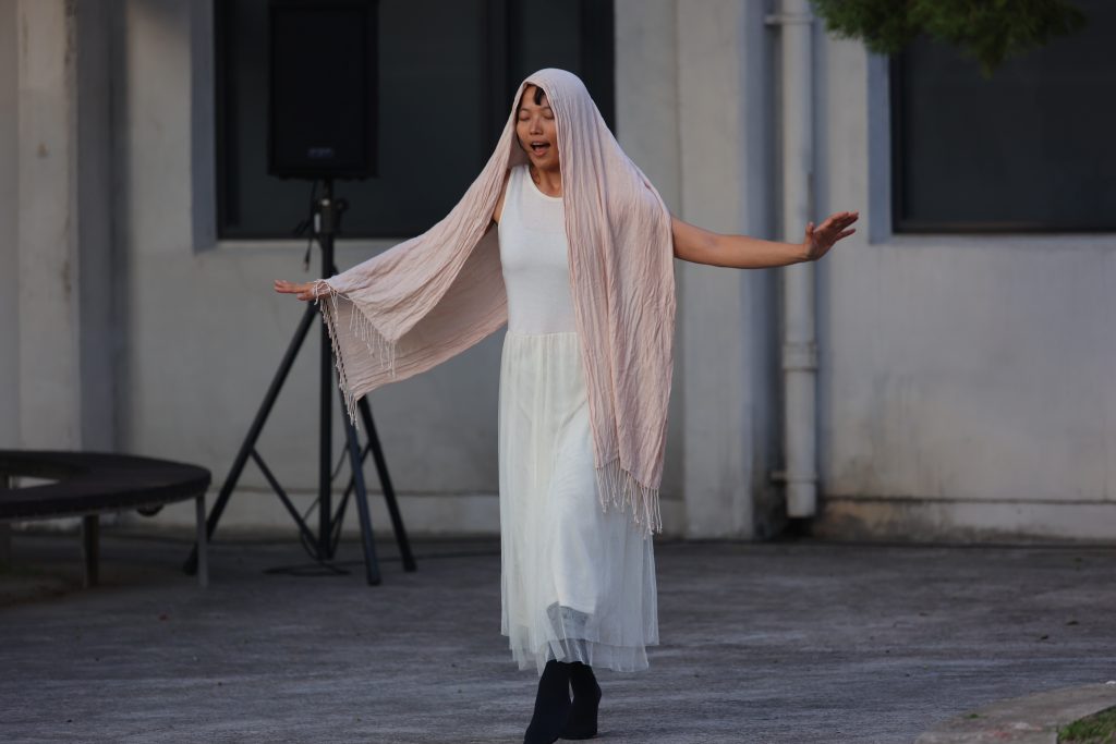 以詩、以歌、與肉身,在歷史的洪流重新交談。首先由歌手謝玉郎演唱三首經典 歌曲,包括 “San Francisco”、”Where Have All the Flowers Gone” 與<補破網>, 是蘊藏反戰、民主的呼聲的三首歌。冬日的風帶著他的聲音,旋律飄散園區角落, 他說:「這裡有許多政治犯的故事,每唱一段,就像替某個被遺忘的故事送出一 縷呼吸。」他在園區看見了一段話頗有感觸:「臺灣的民主得來不易,需要國家以及每個人細心呵護,符合自由民主價值的法律規定,才能讓人權在臺灣深根。」
