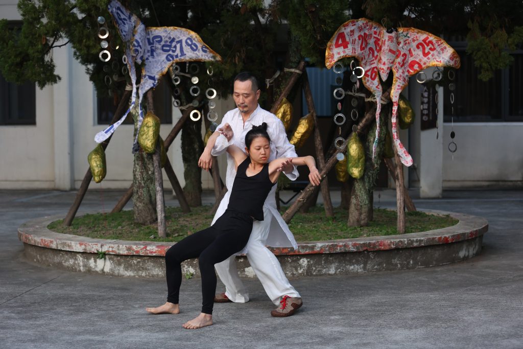 最後,整場表演壓軸是由教授武學二十餘載,以功勁傳授傳承為主,華人武術功勁的代表人彭博老師,結合無垢劇場舞者季展帆的肢體互動,表演一陰一陽、一柔一剛,雙重能量的對峙、一場舞蹈與武術的即興融合。把武術攻擊的力量轉化成溫柔的守護。拳勢、腳步與呼吸交織成另一種無聲的詩。展現動靜合一、大巧若拙、大道至簡、大相無形的拳道思維,那是一種大氣又克制的收束,使節目尾聲沉穩而圓滿。