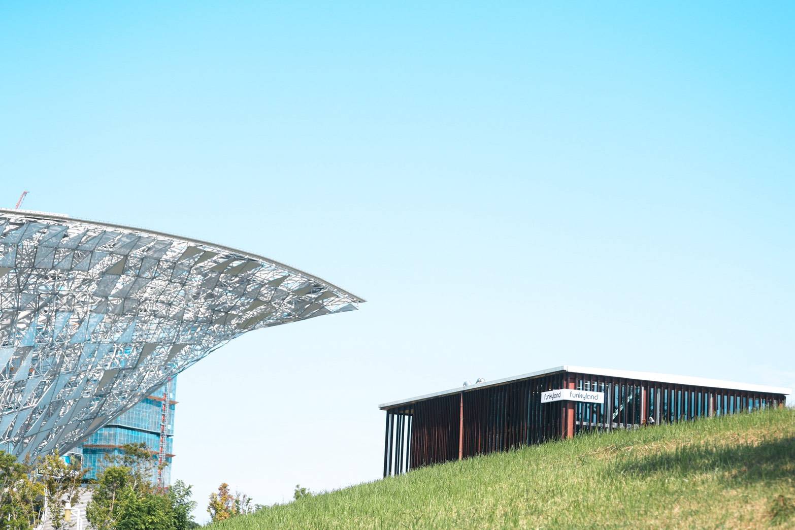 Funkyland坐落於草坡制高點,這種居高臨下且視野開闊的場域,為其提供了獨特的空間張力,是一般鄰里公園難以複製的戰略位置。