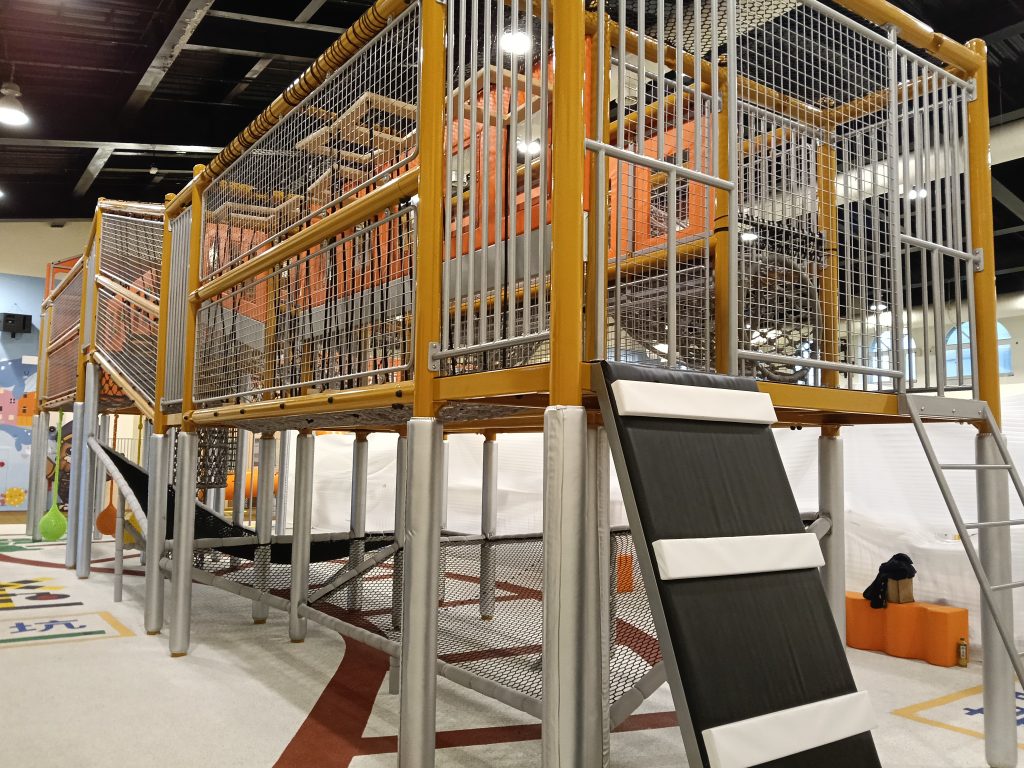 本區以懷舊火車外觀設計,讓孩童彷彿進入巨大的火車車廂。設施集中於「高空挑戰區」,模擬穿越車廂的闖關樂趣,包含鑽籠、平衡獨木、攀岩牆等六大挑戰設施。這不僅能鍛鍊學齡兒童的肢體協調性與平衡感,更能提升挑戰精神。同時,也設有適合低齡或較謹慎孩童的底部爬網遊玩動線,提供多元且安全的遊戲選擇。