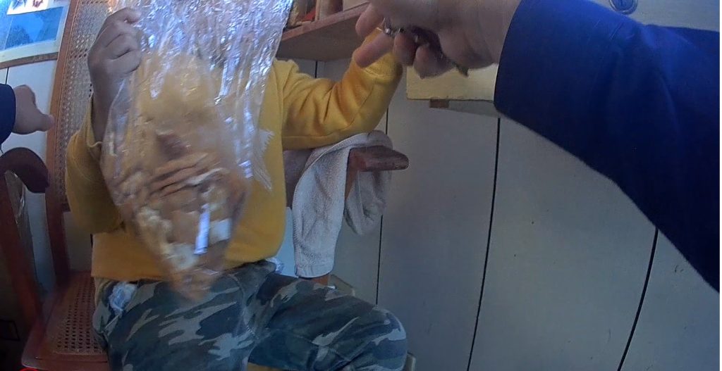 臺中市清水警分局高美所員警黃中隆獲報到場,當時男童拿一袋餅乾食用,愛不釋手,警方詢問「弟弟叫什麼名字、住哪裡、爸爸、媽媽名字等」時,男童不發一語仍專注吃著餅乾,為轉移注意力,警力將整袋餅乾移開,没想到,男童一把拿回去繼續食用,可愛模樣,讓現場民眾直呼「可愛」,警方發現男童還不太會說話,研判應住附近,由於當日下午氣温微涼,為免遭到風寒,先將男童載回所內休息,同時也沿途挨家挨戶詢問,均無人認識。