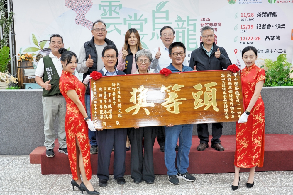 在原住民族委員會和新竹縣政府的支持下,新竹縣農會帶領尖石鄉公所、五峰鄉公所等原鄉地區之茶農,今(12/19)日於新竹縣農會三樓活動中心舉辦第七屆「114年新竹縣原鄉經濟作物冬季高山烏龍茶優良茶評鑑記者會暨頒獎典禮」,茶農涂旭帆拿下特等茶與冠軍茶雙獎為最大贏家,怡農茶園李宥瑢也喜獲冠軍茶及頭等獎,另一名冠軍茶得主則為甲子園盧瑞祥,新竹縣農會邀請大家12月22日至12月26日到縣農會體驗雲裳烏龍茶好風味!