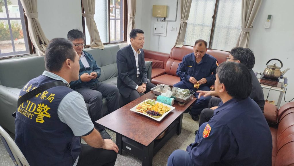 此外,蔡局長於海端聯合所及分局本部與同仁茶敍時,也特別關懷同仁工作環境與身心狀態,表示對於同仁上班地點的選擇,原則上將予以尊重與支持,因每位同仁皆有不同的個人或家庭因素,若能在安心、安定的環境中投入勤務,對工作表現與整體團隊士氣,必能產生正向加乘效果。另於蔡局長至分局偵查隊頒發破案茶時,適逢內政部警政署刑事警察局花東駐區督察施桑白蒞臨關山分局偵查隊視察刑事業務,雙方相見歡,並就轄區治安現況、重大刑案偵辦經驗及刑事業務推動等議題交換意見,現場互動熱絡,充分展現中央與地方警政單位密切聯繫、攜手強化治安維護工作的合作默契。