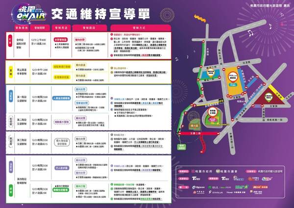 另在交通管制方面,將實施一系列交通疏導管制措施。交通管制措施(如交通維持宣導單)如下: