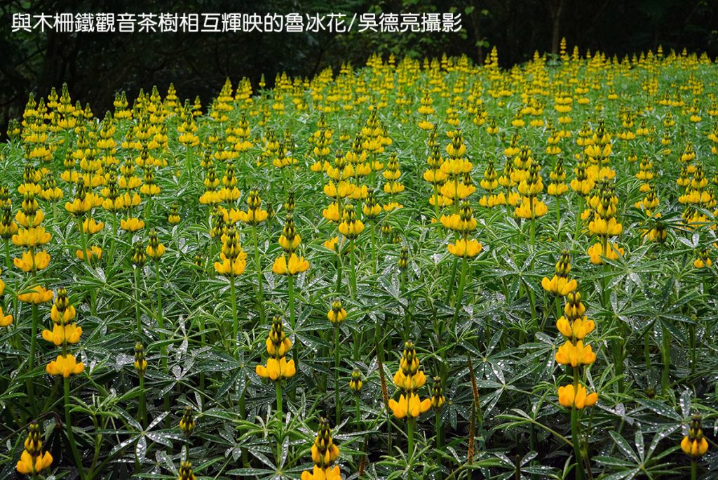 「魯冰花正盛開,一行行的茶樹和一行行的魯冰花,形成綠黃相間的整齊圖案……」,從貓空纜車站循著階梯往下走,已故文學大師鍾肇政《魯冰花》的優美文字瞬間湧上心頭。天空正飄著細雨,茶園滿是泥濘,茶樹一株株生氣盎然地彼此促膝,輝映風鈴般金晃晃的魯冰花,隨著微風與晶瑩的雨滴一起搖曳生姿,像是鏡頭遮光罩上不斷抖落的水珠,又像是電影歌詞中「閃閃的淚光」,令人更疼惜每年五月上市的木柵鐵觀音春茶。
