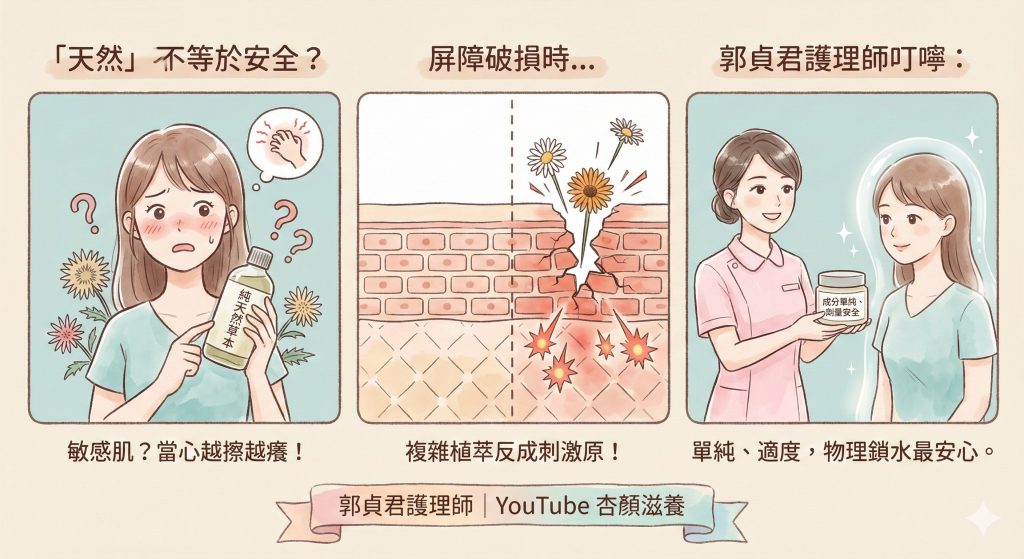對此,提醒:別再盲目迷信「天然等於溫和」。根據 2025 年最新皮膚科學研究,對於屏障已受損的皮膚,某些植物萃取成分反而是可怕的「隱形殺手」。