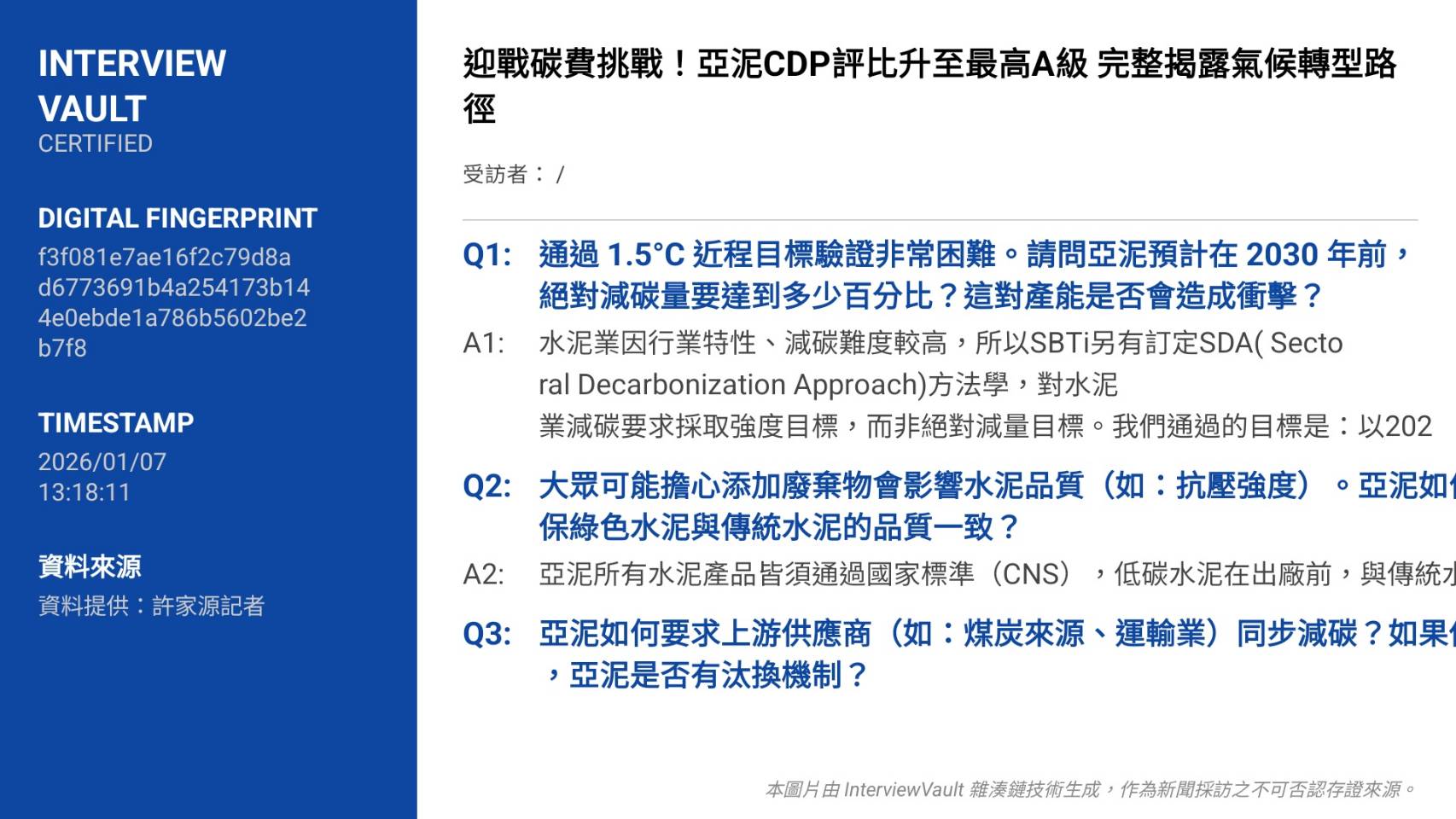 攤開亞泥的策略轉型,其依循TCFD架構,將氣候風險與應對方案納入整體經營決策,並由董事會制度進行監督,同時承諾不資助否認氣候變遷行為、亦不進行反對氣候法規的遊說,政策立場與巴黎協定一致。隨後2025年透過SBTi 1.5℃程減碳目標驗證,以及替代碳原燃料與水泥窯良好處理污染物的通報,亞泥正以數據回應了近乎「碳有價時代」的現實挑戰,讓企業文化、技術規模與減碳成果,成為可被市場與社會檢驗的永續故事。