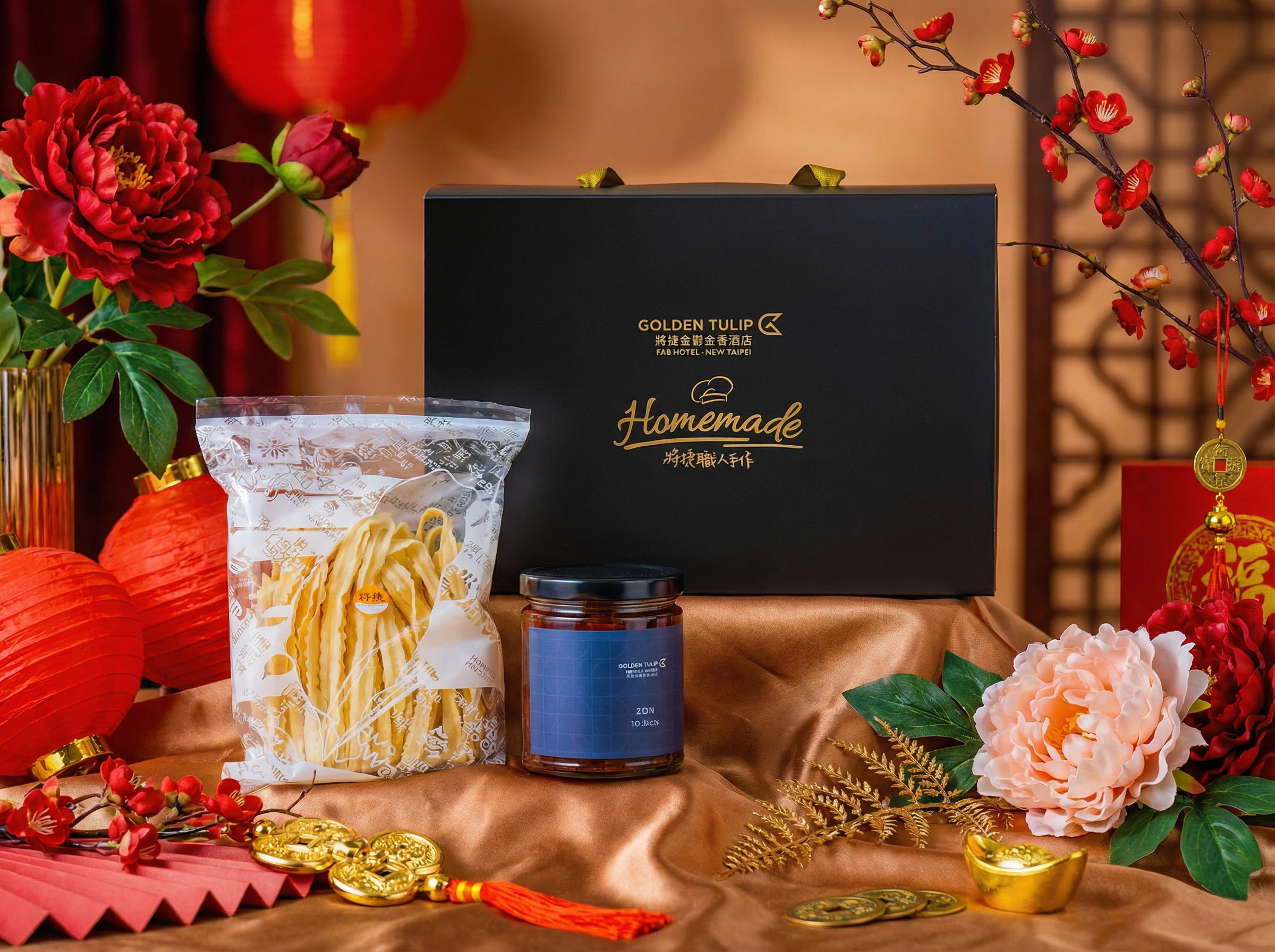 同步推出的「將心捷作」春節禮盒,是主廚對風味堅持的詩意呈現,內含極品干貝XO醬,干貝與蝦乾在秘製香料中慢炸,層層香氣如浪潮湧來;搭配金黃的蘆薈蕾絲麵,南瓜泥的自然甜與蘆薈的清新,無論冷熱都彈牙誘人。這不只是禮物,更是心意的橋樑,早鳥95折、大宗更享85折,讓企業或家庭在送禮中傳遞那份細膩的台灣人文溫度,彷彿每一盒都藏著一個溫暖的故事。