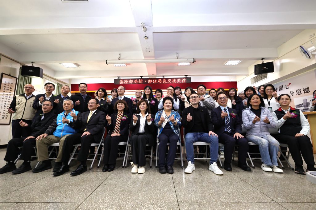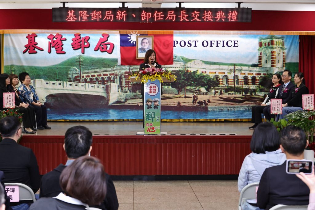 基隆郵局今(15)日舉行新卸任局長交接典禮,原任局長林賽萍因任內表現優異,榮陞中華郵政總公司集郵處處長,新任局長由原板橋郵局副局長吳聰明接任。基隆市副市長邱佩琳受邀出席觀禮,向新卸任局長表達祝賀與感謝,並肯定基隆郵局長期深耕地方、回饋鄉里的付出,期許郵政服務持續精進,與城市發展並行。