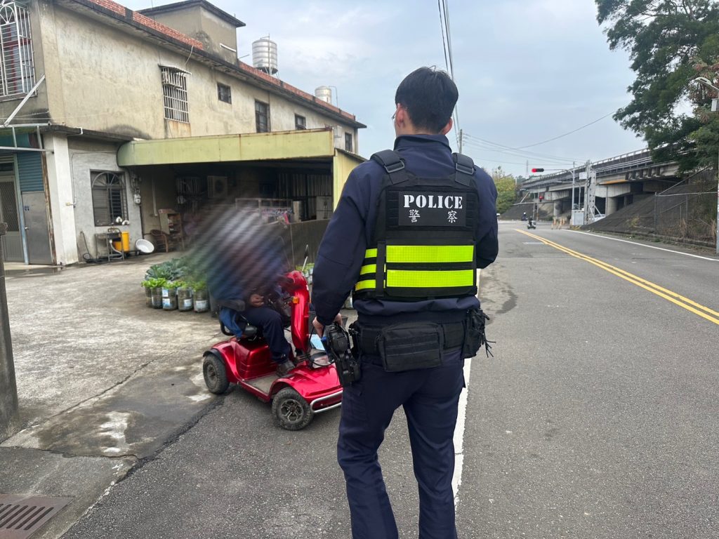 苗栗縣警察局頭份分局尖山派出所副所長劉澤羽、警員黃柏元,於115年1月16日9時許於巡邏途中發現,一名行動不便之年長男子乘坐電動代步車停於頭份市尖豐路旁,遂前往關心該民眾。