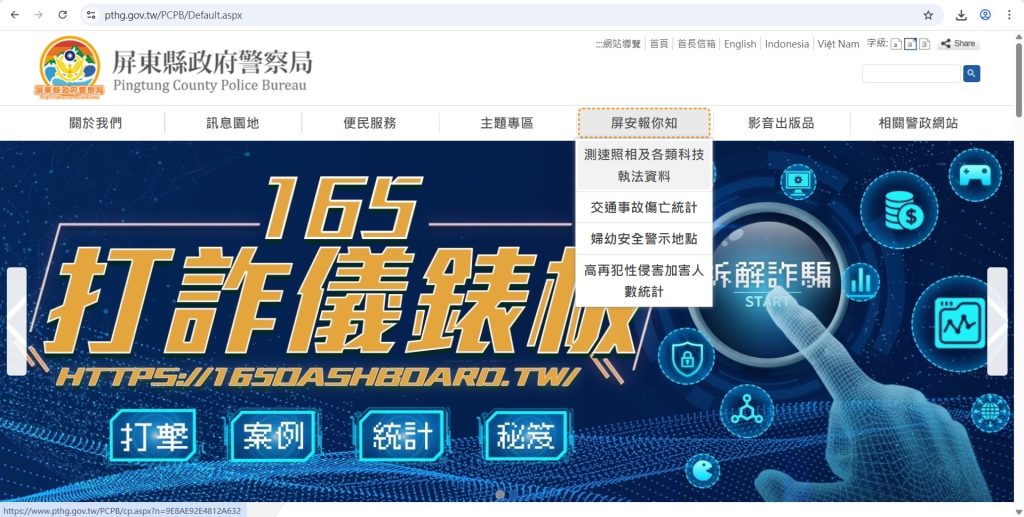 屏東縣政府警察局官方網站:https://www.pthg.gov.tw/PCPB/Default.aspx