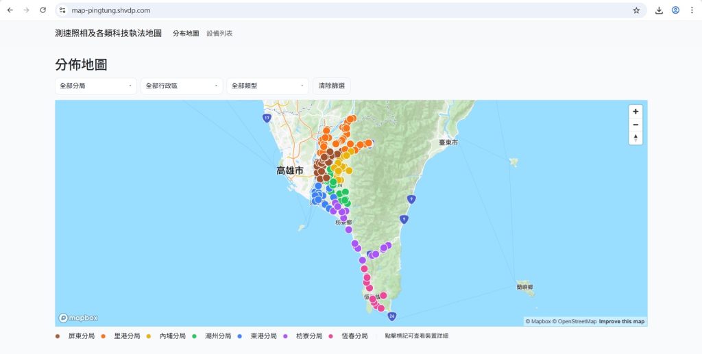 測速照相及各類科技執法地圖:https://map-pingtung.shvdp.com/