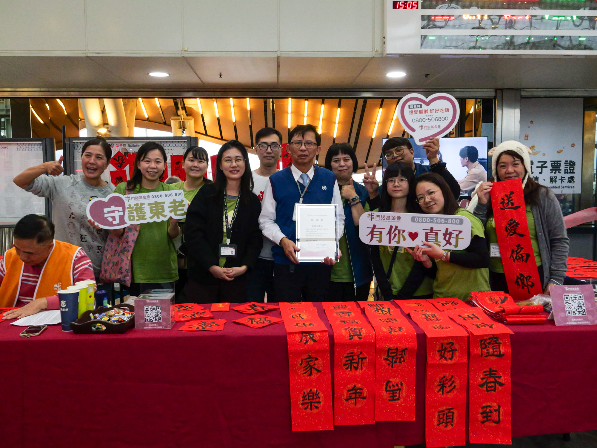農曆新年將至,門諾基金會16日下午在花蓮火車站三樓剪票口前舉辦「2026樂捐東老索春聯・送愛偏鄉過好年」公益快閃活動,邀請返鄉旅客與在地民眾在墨香中迎接新春。透過手寫春聯與隨喜樂捐的方式,將年節祝福轉化為實際行動,支持東部偏鄉長者與身障弱勢家庭照護服務。活動現場人潮絡繹不絕,至結束止共募得18,528元,善款將全數投入「116東部老人暨身障弱勢家庭照護計畫」。