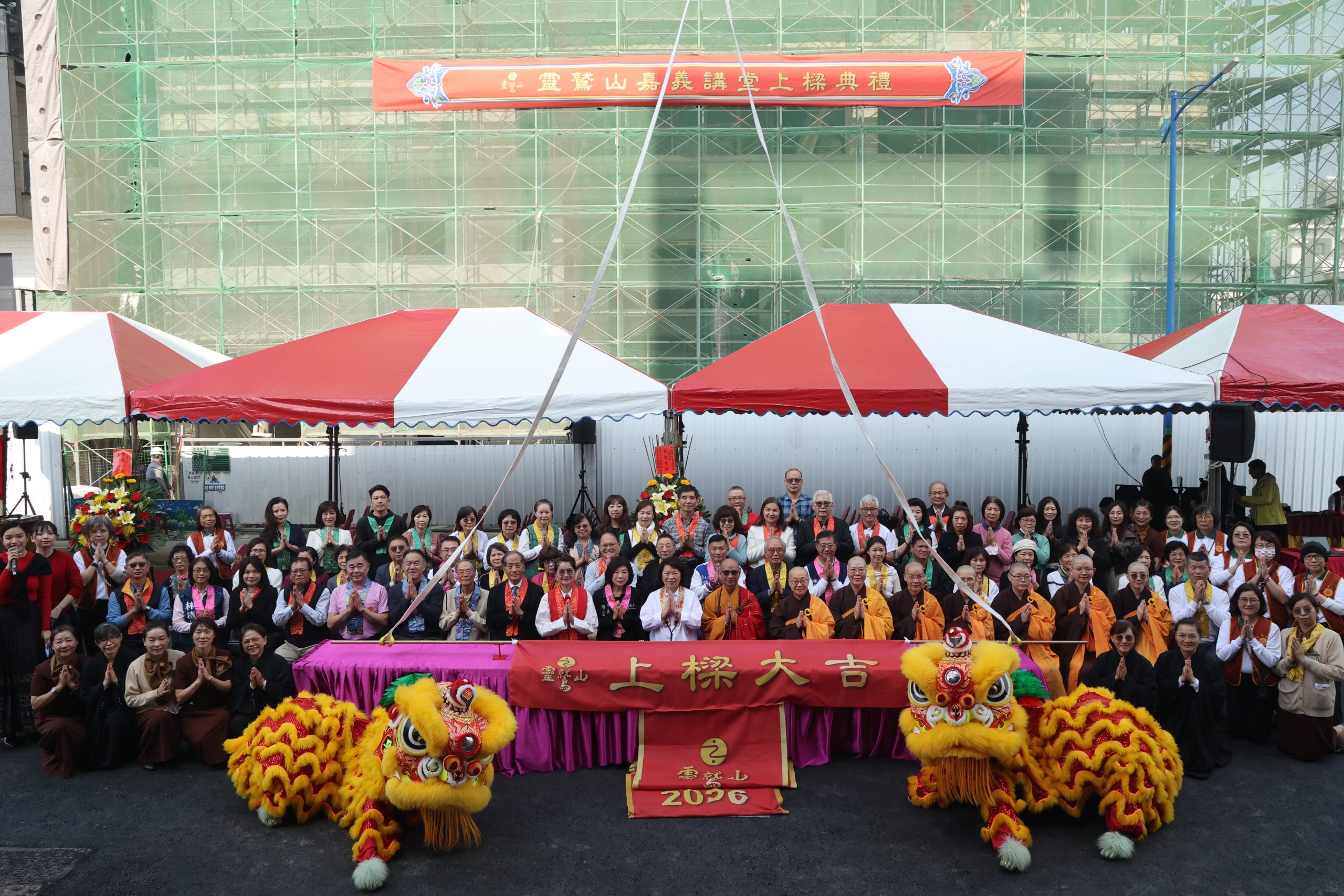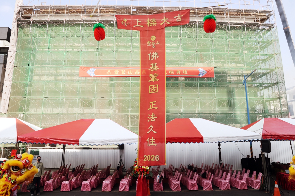 大梁升起步步高,菩提永駐光耀嘉義!2026年1月19日午時良日吉時,靈鷲山嘉義講堂舉行上樑殊勝盛典,在祥獅舞動、法樂悠揚的喜悅聲中,百位貴賓與護法善信齊聚一堂,歡喜見證大梁安立、道場法脈延續的歷史時刻,預計2027年啟用的新講堂,將成為一處安心修行、聞法學習、推動靈性生態與生命教育的現代修行道場,祈願善念持續流轉、佛法在地生根。