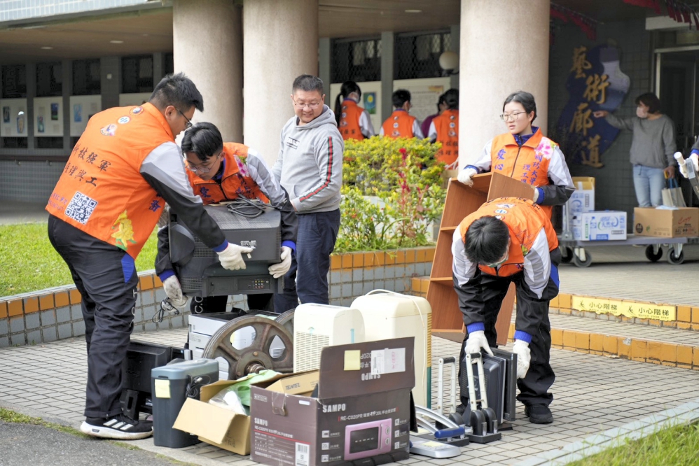 學生們在搬運作業全程重視安全管理、配戴手套等必要防護裝備,搬運重物時採取多人協作方式,並由專責人員進行現場指揮與動線管制,避免人車交錯及作業風險。各項作業皆依安全規範執行,兼顧效率與防護,使廢棄物搬運工作得以在安全無虞的情況下順利完成,家區環境亦隨之更加整潔有序。