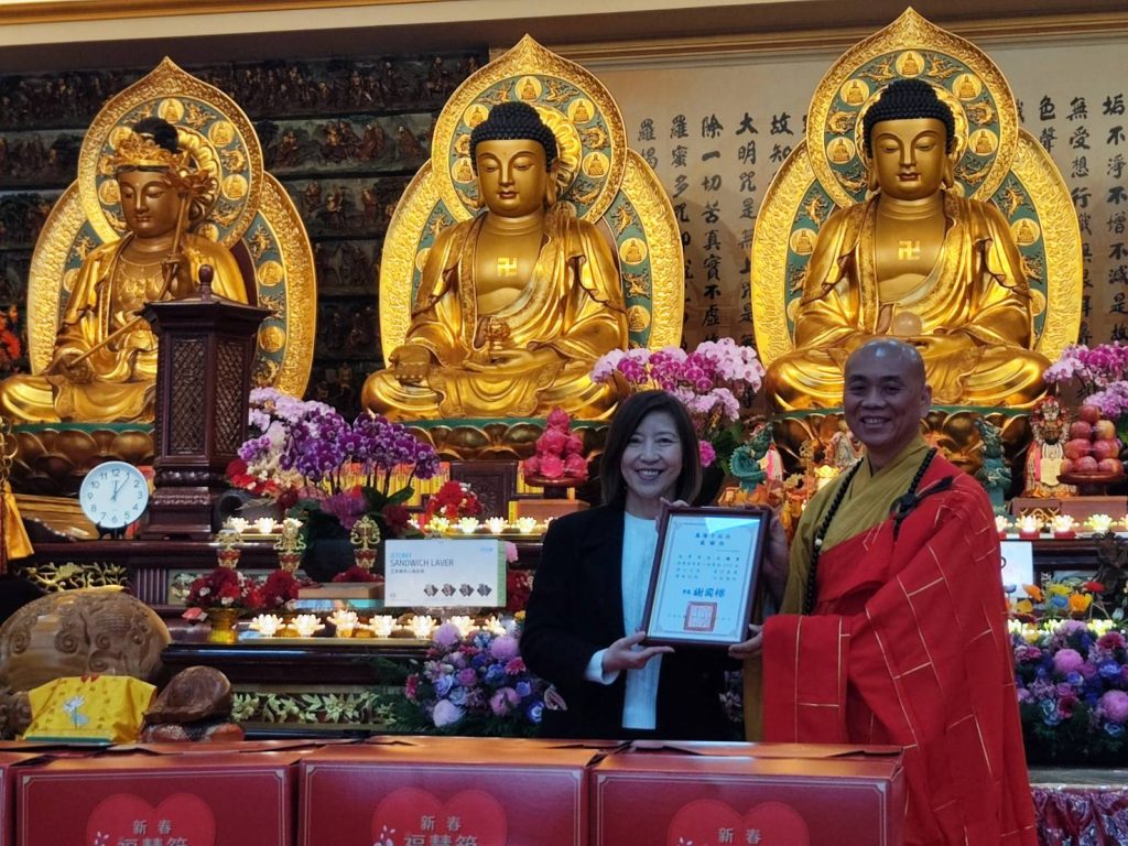 為使基隆市弱勢家戶在歲末年終也能安心迎接象徵團圓的春節,並感受到社會福利的溫暖,元亨寺臺北講堂於21日捐贈「福慧箱」共500箱予基隆市,協助春節期間有需要的弱勢家庭度過溫馨好年。基隆市政府社會處由盛慧中副處長代表回贈感謝狀,表達對元亨寺臺北講堂善行義舉的誠摯謝意。